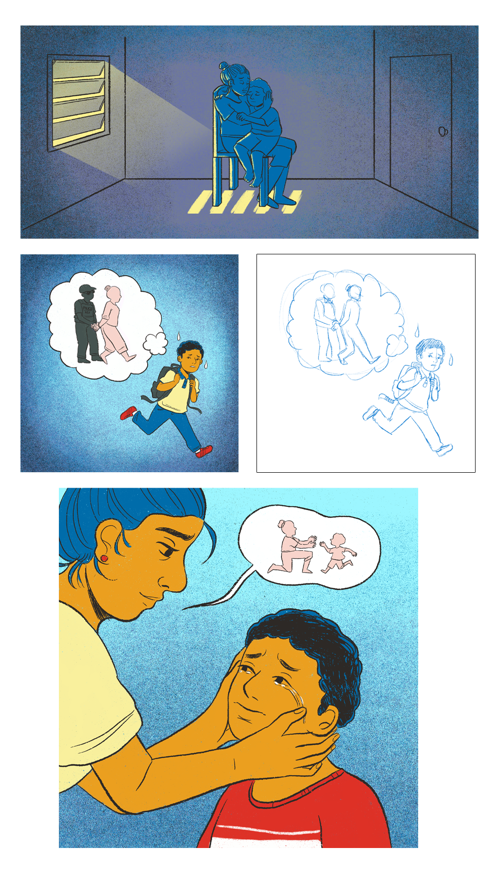 A sample of illustrations for the Centro de Periodismo Investigativo on ICE Raids